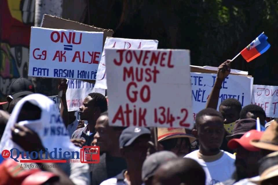 Parmi les multiples griefs portés par cette mobilisation, deux choses ne sont pas négociables selon les manifestants. Il s’agit, d’une part, de la contestation du référendum constitutionnel de Jovenel Moise et, d’autre part, du départ de ce dernier du pouvoir. Arborant le drapeau national, les protestataires ont effectué le parcours en entonnant des couplets témoignant de leur ras-le-bol vis-à-vis du chef de l’État qui décide, disent-ils, de garder le pouvoir au-delà de l’expiration de son mandat le 7 février dernier.