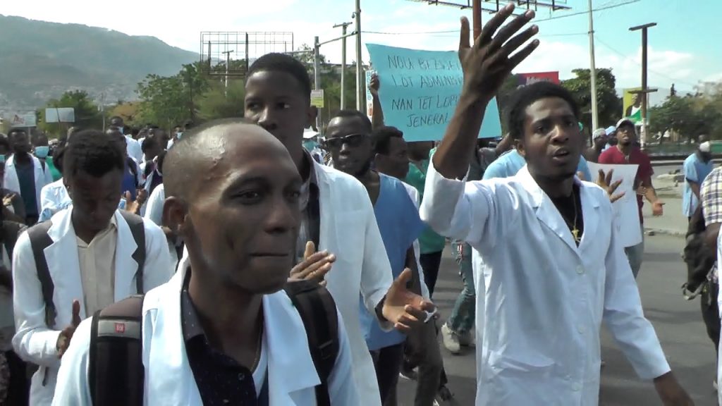 En effet, ces professionnels de santé ne cachent pas leur mécontentement et ont foulé les rues de la capitale le 6 février en brandissant des pancartes comportant des messages clairs et précis sur ce qu’ils demandent aux autorités concernées. Les jeunes médecins se sont directement adressés au Ministre de la Santé Publique et de la Population, Dr Alex Larsen, au directeur général de cette institution, Dr Lauré Adrien et à la directrice de l’Hôpital de l’Université d’État d’Haïti, Jessie Adrien Colimon, et bien-entendu au locataire de la Primature, Ariel Henry.