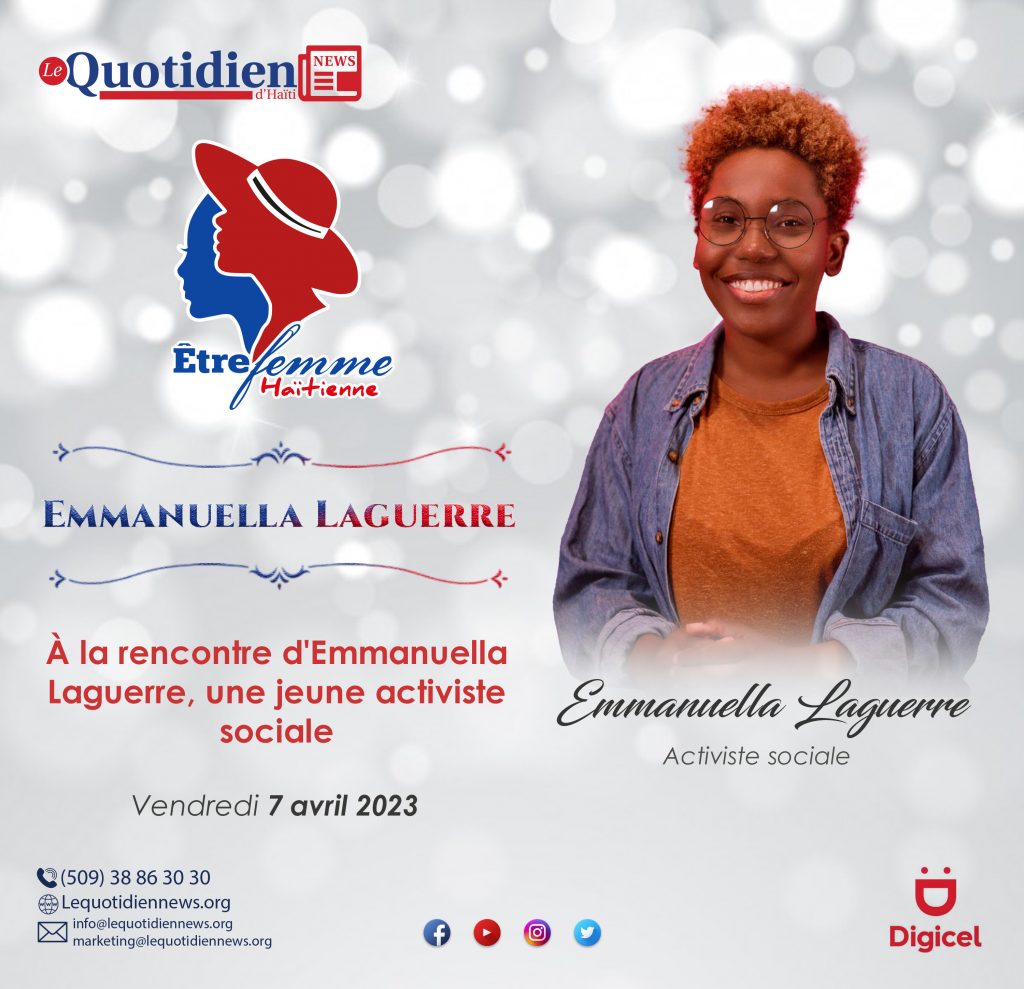 Née à Port-au-Prince le 15 mars 1997, Emmanuella Laguerre a grandi dans une famille chrétienne à Fort national, quartier populaire situé à quelques encablures de Bel air. Elle a fait ses études primaires à Sainte Trinité, et ses classes secondaires au Lycée du Cent cinquantenaire, et a réussi son baccalauréat au Collège Paul Robert. À la fin de ses études classiques, elle a intégré la Faculté de Droit et des Sciences Economiques de Port-au-Prince, où elle vient de boucler son cursus en Droit. Actuellement, elle travaille dans une institution publique.