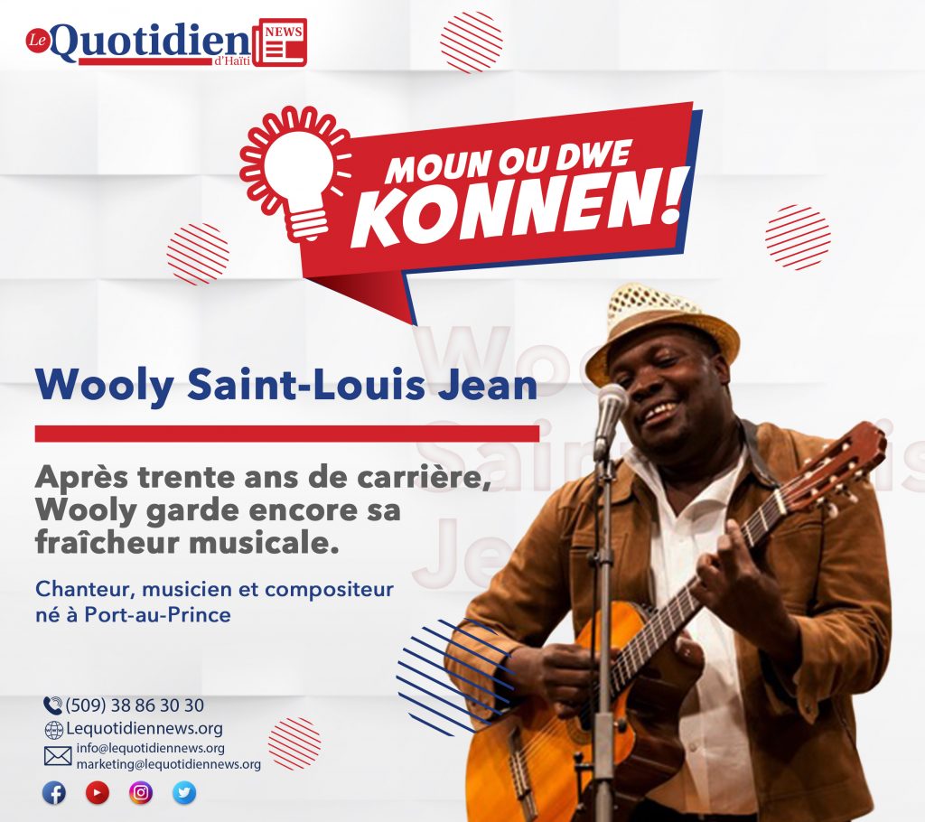 Se passant de présentation, l’homme à la guitare, Wooly Saint Louis Jean, met en chanson la poésie haïtienne en proposant ainsi un alléchant dessert musical pour le bonheur des amants de la bonne musique. Avec plus d’une cinquantaine de musiques dans sa discographie, le musicien et professeur joue à merveille sa partition dans le secteur musical haïtien.