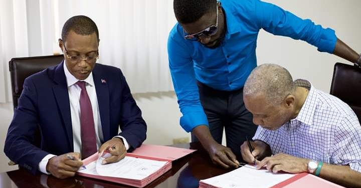 Le Directeur Général du Fonds National de l’Éducation (FNE), Joseph Frantz Nicolas et leb Coordonnateur National de la Société Haïtienne...