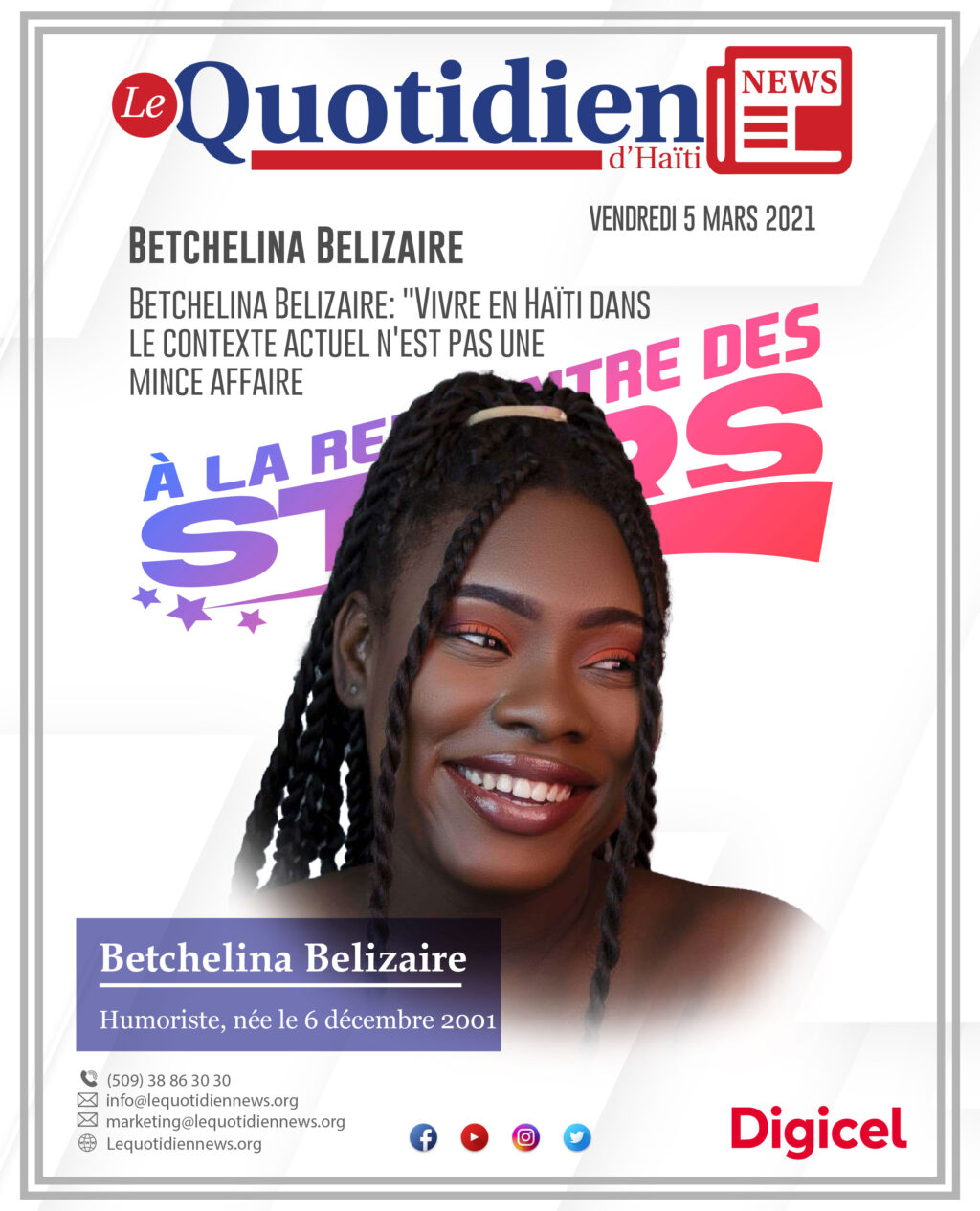 La jeune humoriste de dix-neuf ans est bien consciente des difficultés qui obstruent le parcours des femmes en Haïti. « En général, vivre en Haïti dans le contexte actuel n’est pas une mince affaire. Mais, c’est encore plus stressant pour les femmes », constate Betchelina Belizaire qui avance que c’est l’une des raisons qui l’oriente vers la voie de la comédie. « En effet, comme comédienne, je suis libre de discuter de ce genre de problème dans la société », croit-elle.