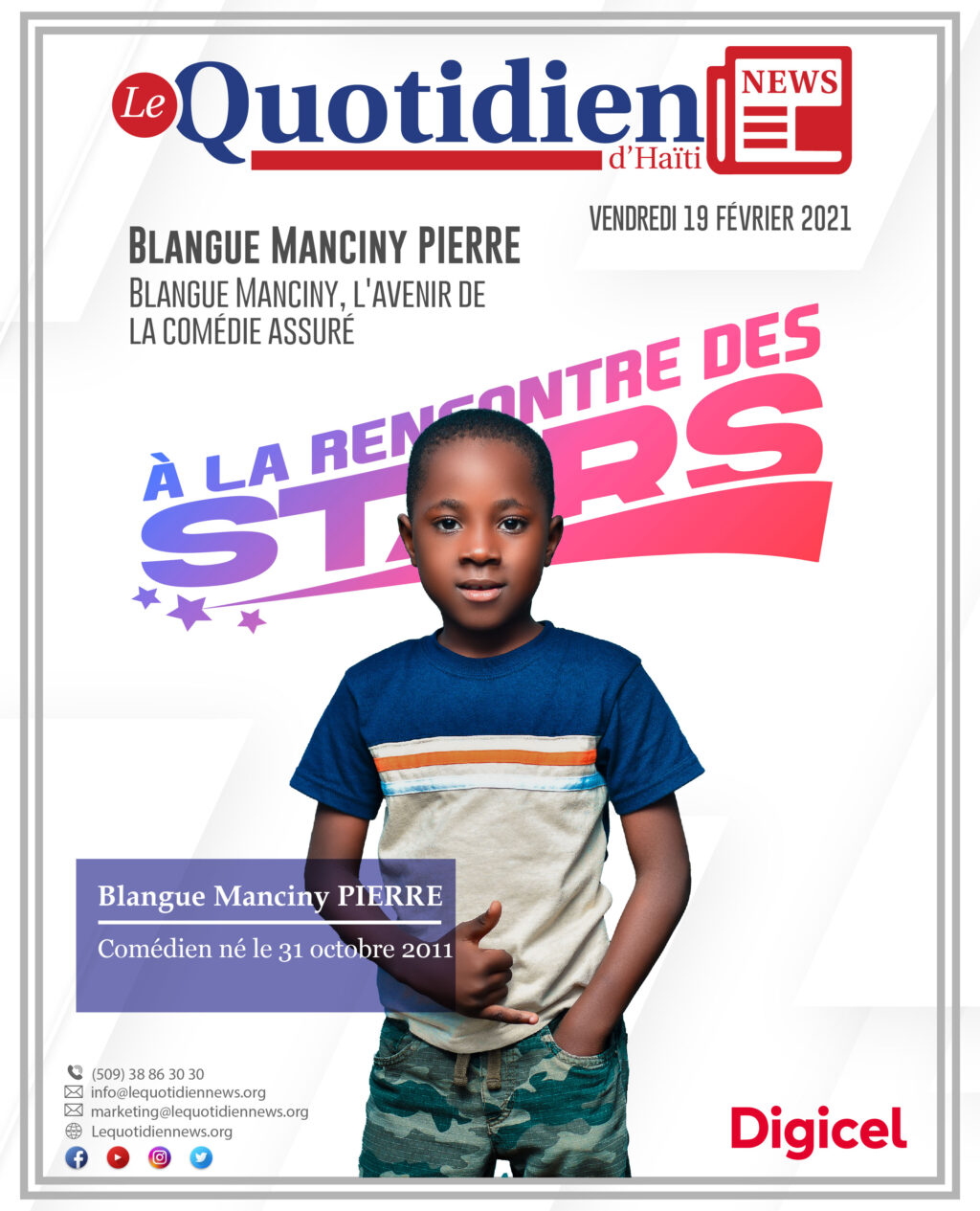 Âgé de neuf ans, Blangue, de son vrai nom Blangue Manciny PIERRE, naît à Limbé le 31 octobre 2011 d’une famille de deux enfants dont il est le benjamin. Élevé dans une atmosphère pleine d’amour et de bonne humeur, Blangue investit ses premiers pas à l’école chez les frères Joseph Le Pevedic. Il poursuit actuellement ses classes primaires au Collège Vision Nouvelle. À noter qu’il est en quatrième année fondamentale.