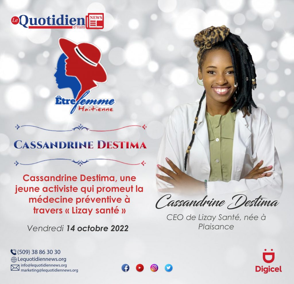 Cassandrine Destima, fille aînée de sa mère et cadette de son père, chérit en elle la fierté christophienne comme la plupart des natives du grand Nord. Née à Plaisance, elle a grandi à quelques encablures de la capitale, à Cité Soleil, à Sarthe 55 plus précisément. « J’ai fait mes études primaires à l’Institution Mixte le phare à Cité Soleil, et une partie de mes classes secondaires au Lycée Jean Mary Vincent à Carradeux et l’autre partie à l’institution Mixte Shekina qui se trouve à Clercine », se rappelle la jeune femme de vingt-quatre ans, qui poursuit ses études de médecine à l’Université de Mont-Everest d’Haïti.