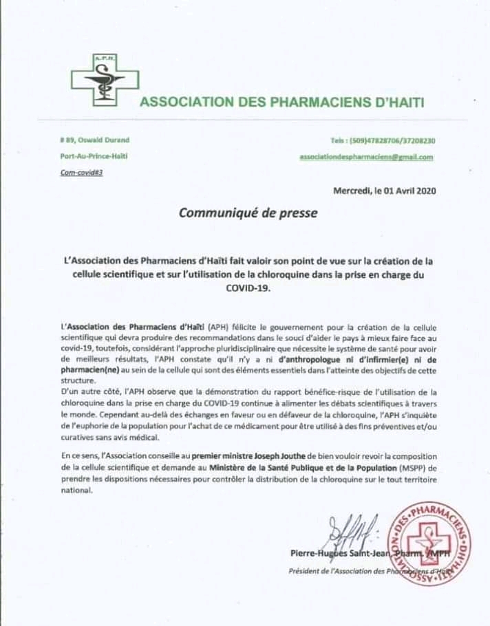 L'Association des Pharmaciens d'Haiti (APH) demande au premier ministre haïtien, en l'occurrence Joseph Jouthe de revoir la composition de la...