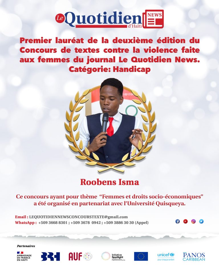 Finaliste de la première édition, Roobens Isma a remporté haut la main sa catégorie, au Concours de textes organisé par...