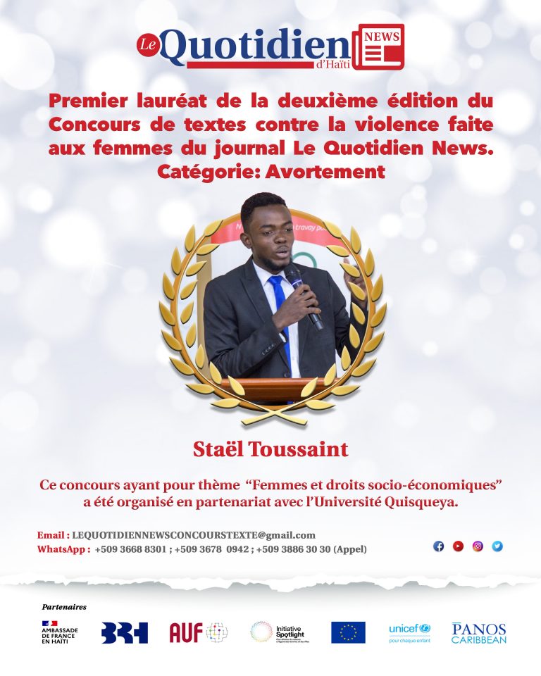 Staël Toussaint s'est montré persuasif lors de la finale du Concours de textes contre la violence faite aux femmes organisé...
