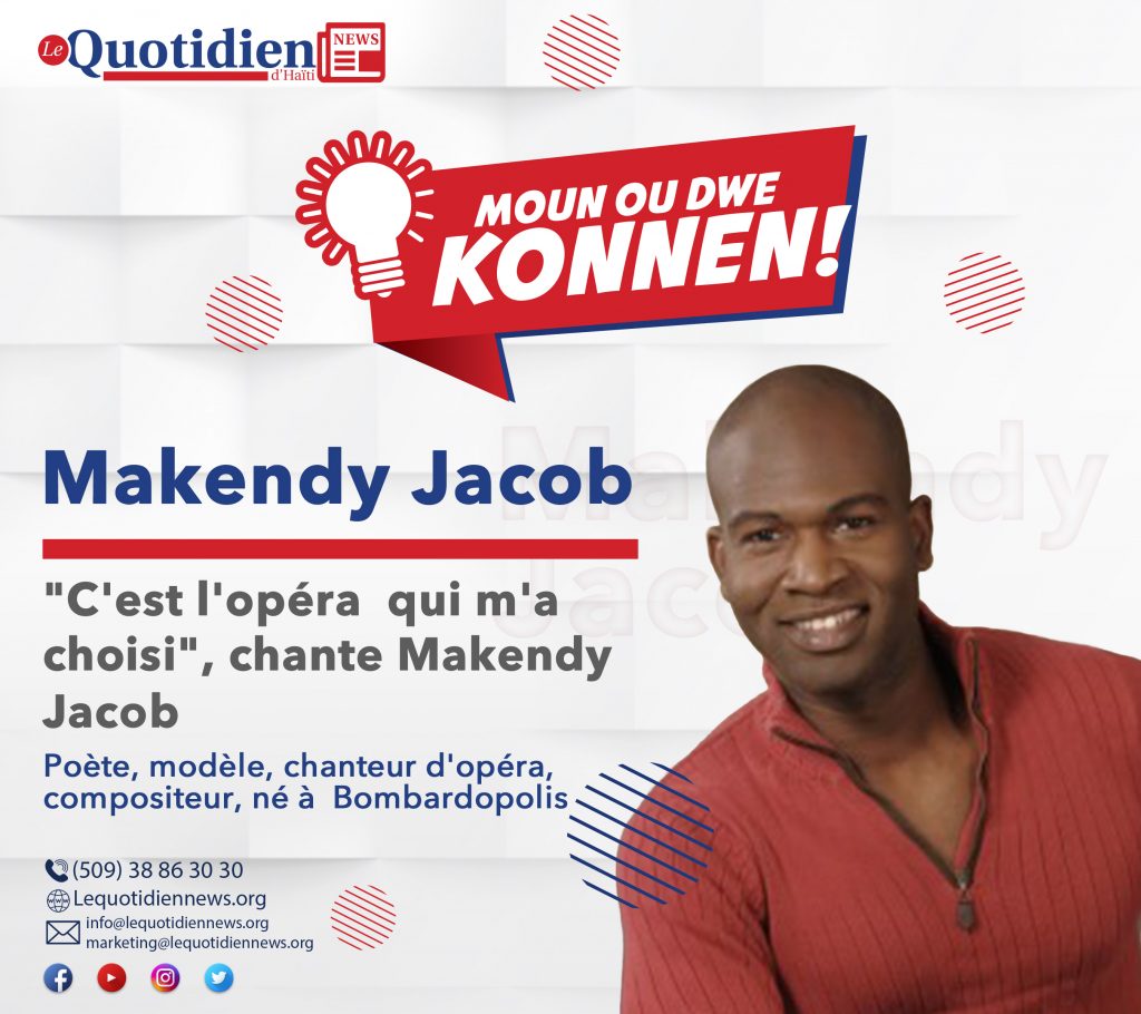 Makendy Jacob s’est hissé dans le club restreint des chanteurs noirs d’opéra, en se distinguant par son talent tant apprécié par le directeur général de l’opéra d’Orlando, le « grammy award » Gabriel Preisser. Le chanteur classique se sert de sa virtuosité pour préserver et raconter à travers le chant, l’histoire de son peuple, afin d’inspirer sa nation en émettant cette note d’espérance tant attendue.