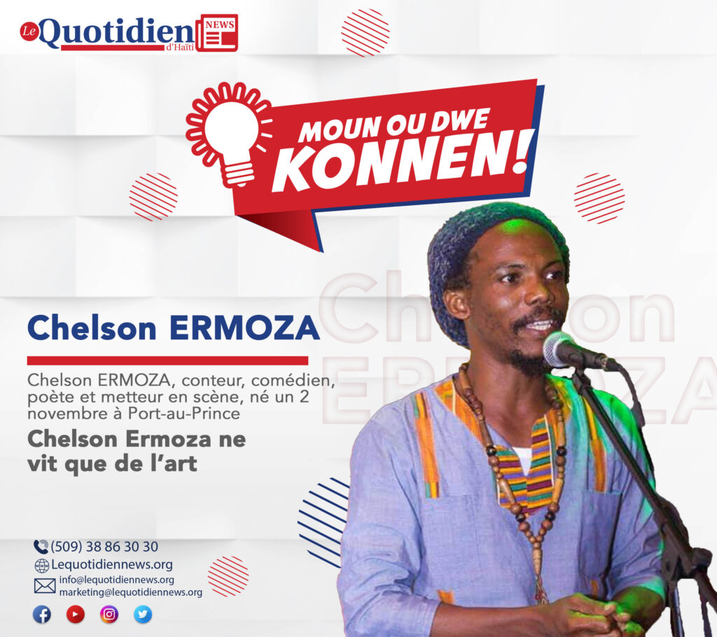 Chelson Ermoza est un comédien haïtien qui ne vit que de l’art de la scène. Comme acteur ou conteur, il se plaît à s’oublier devant la foule des spectateurs qui le couvrent d’applaudissements.
