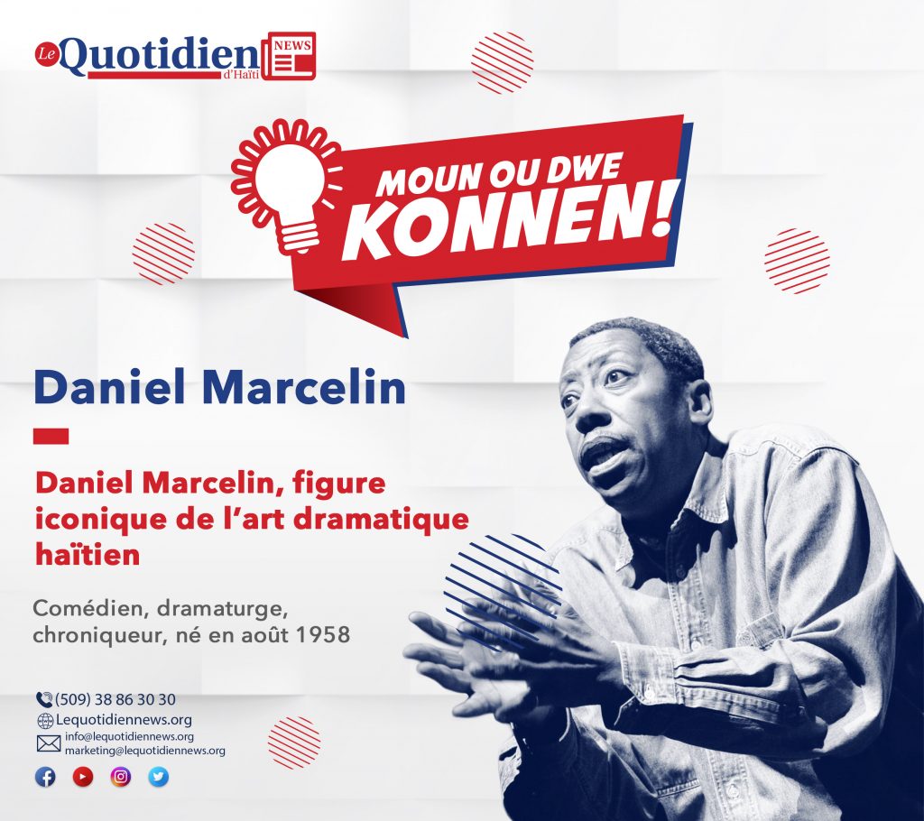 Comment parler du théâtre haïtien sans citer le nom de Daniel Marcelin, celui qui s’est taillé au fil des ans une légende dans l’art dramatique haïtien. Eloquence, gesticulation, et charisme se côtoient dans sa présence scénique. C’est la figure même du théâtre haïtien. Dramaturge, metteur en scène, et comédien, il a revêtu tous les costumes de cet art pour faire honneur à son pays dans le monde entier.