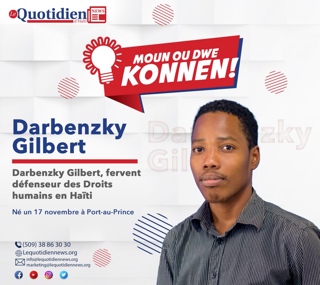 Darbenzky Gilbert, citoyen engagé, est un jeune leader haïtien sensible aux questions des Droits Humains en Haïti. En 2018, il a mis sur pied un organisme de promotion et de défense des Droits Humains, l’Ordre des Défenseurs des Droits Humains, qui accompagne notamment les principales victimes de violation des Droits Humains en Haïti