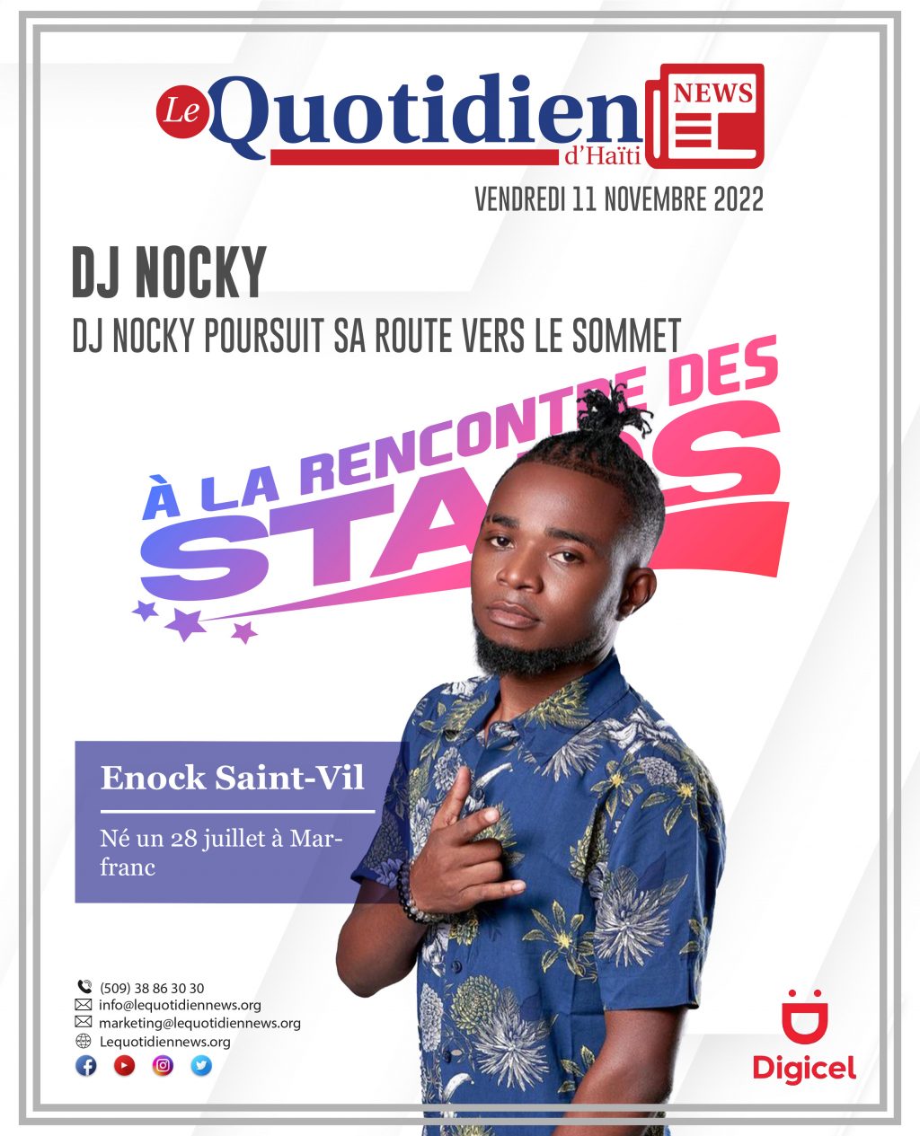 Enock Saint-Vil, mieux connu du public sous le nom de Dj Nocky, est un jeune Disc jockey haïtien qui prend à cœur ce qu’il fait. Né à Jérémie, plus précisément dans la commune de Mafranc, il a grandi en nourrissant une grande passion pour la musique. C’est ce qui l’a orienté dans cette carrière de Dj.