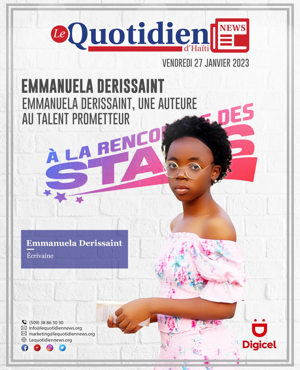 L’encre de sa plume exhale encore l’odeur de sa jeunesse qui se hâte de découvrir les reliefs du monde. Âgée de dix-sept ans, Emmanuela Derissaint est une jeune autrice qui se démarque par son talent, sa passion et son amour pour les mots, et notamment son sens de l’imagination. Cette passion ardente pour les mots ne date pas d’aujourd’hui. Car, depuis son enfance, à l’école, en cours de production écrite, elle éprouvait le plaisir de soigner les constructions de ses phrases afin d’en faire un tout ayant un sens, tant à ses yeux pleins d’innocence qu’au regard méticuleux des correcteurs.