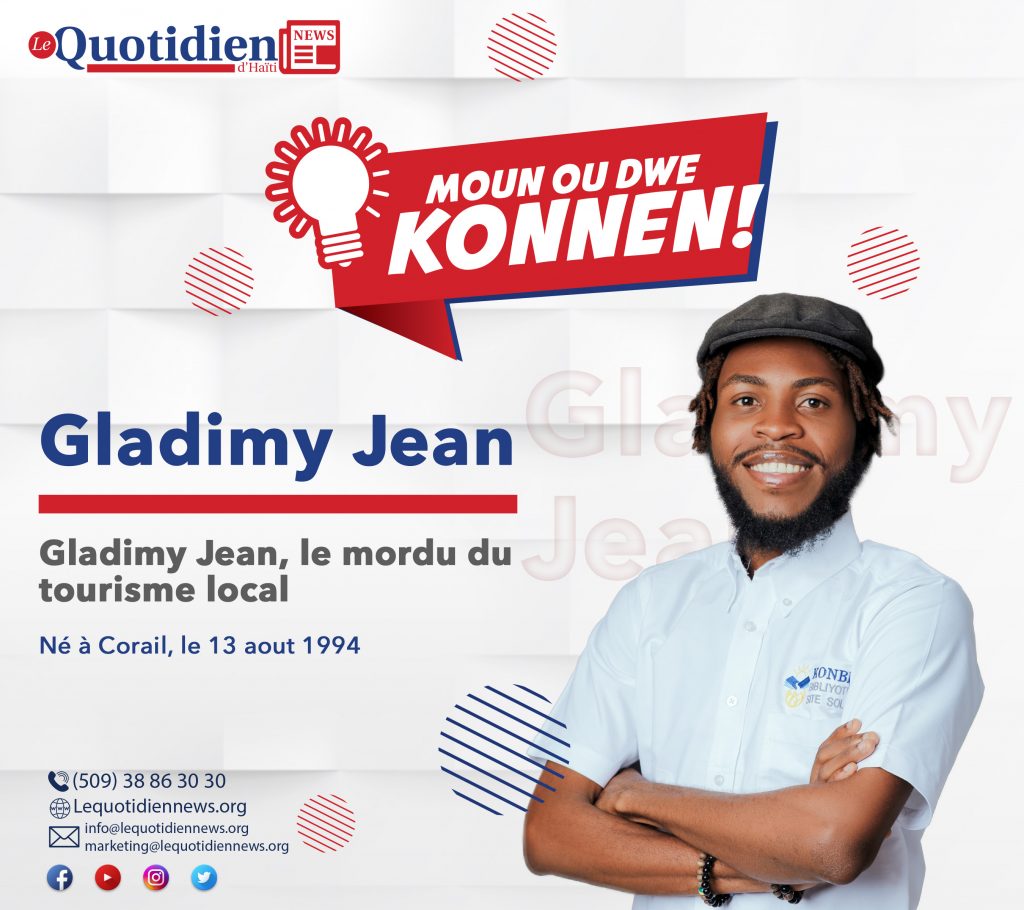 Gladimy Jean, un jeune leader et entrepreneur social, dirige une entreprise qui promeut les valeurs touristiques du pays. Avec Le Paradis haïtien, il rêve de faire du pays la principale destination touristique de la Caraïbe. C’est dans cette perspective qu’il organise des tournées dans le pays afin de permettre aux gens, nationaux et étrangers, de découvrir les plus belles facettes du pays.