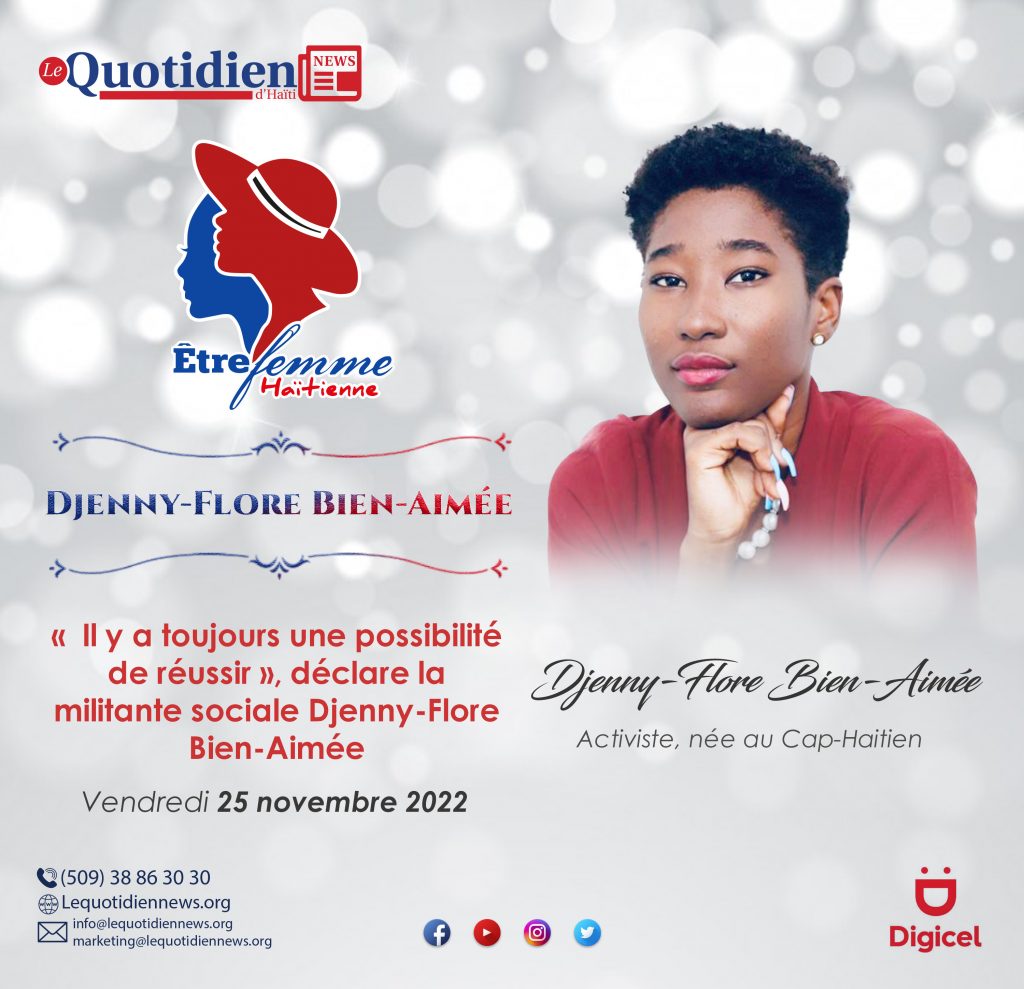 Née dans la somptueuse ville historique du Cap-Haïtien, Djenny-Flore Bien-aimée a grandi en ayant en elle le germe de la fierté capoise, comme tous les natifs de cette ville d’ailleurs. Elle se veut une jeune femme fascinée par « l’idée d’une société inclusive dans laquelle tous les jeunes, valides ou déficients, peuvent bénéficier de l’égalité des chances, sans stigmatisation ni discrimination, et œuvrer ainsi pour le bien-être de leur communauté », si l’on s’en tient à ses mots.