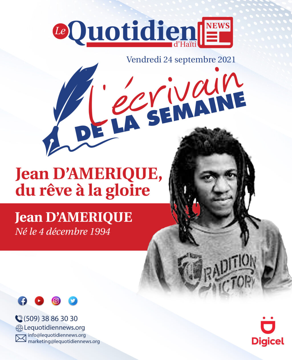 Jean D’AMERIQUE, né Jean Civilus, a vu le jour un 4 décembre 1994 à Côte-de-Fer en Haïti. Il est poète, slameur et dramaturge. Il a grandi dans sa ville natale avant de rejoindre la capitale en 2006. Il poursuit ses études jusqu’à la philosophie dans un lycée à Port-au-Prince. Ensuite, il intègre l’École Nationale Supérieure et la Faculté d’Ethnologie, en 2013, pour des études de philosophie et de psychologie. Cependant, il abandonne ses études pour pouvoir se consacrer à l’écriture.