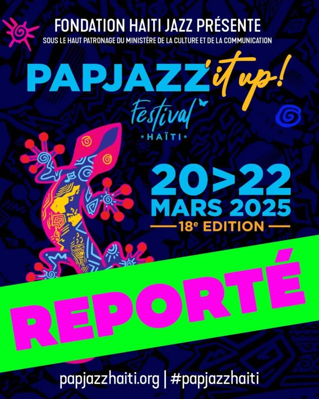 La 18 édition du Festival de Jazz de Port-au-Prince  (PAPJAZZ), très attendue, est une fois de plus reportée, en raison de la situation sécuritaire qui ne cesse de se dégrader dans le pays. Dans un communiqué en date du 20 mars 2025, la Fondation Haïti Jazz a annoncé avec regret ce second report.