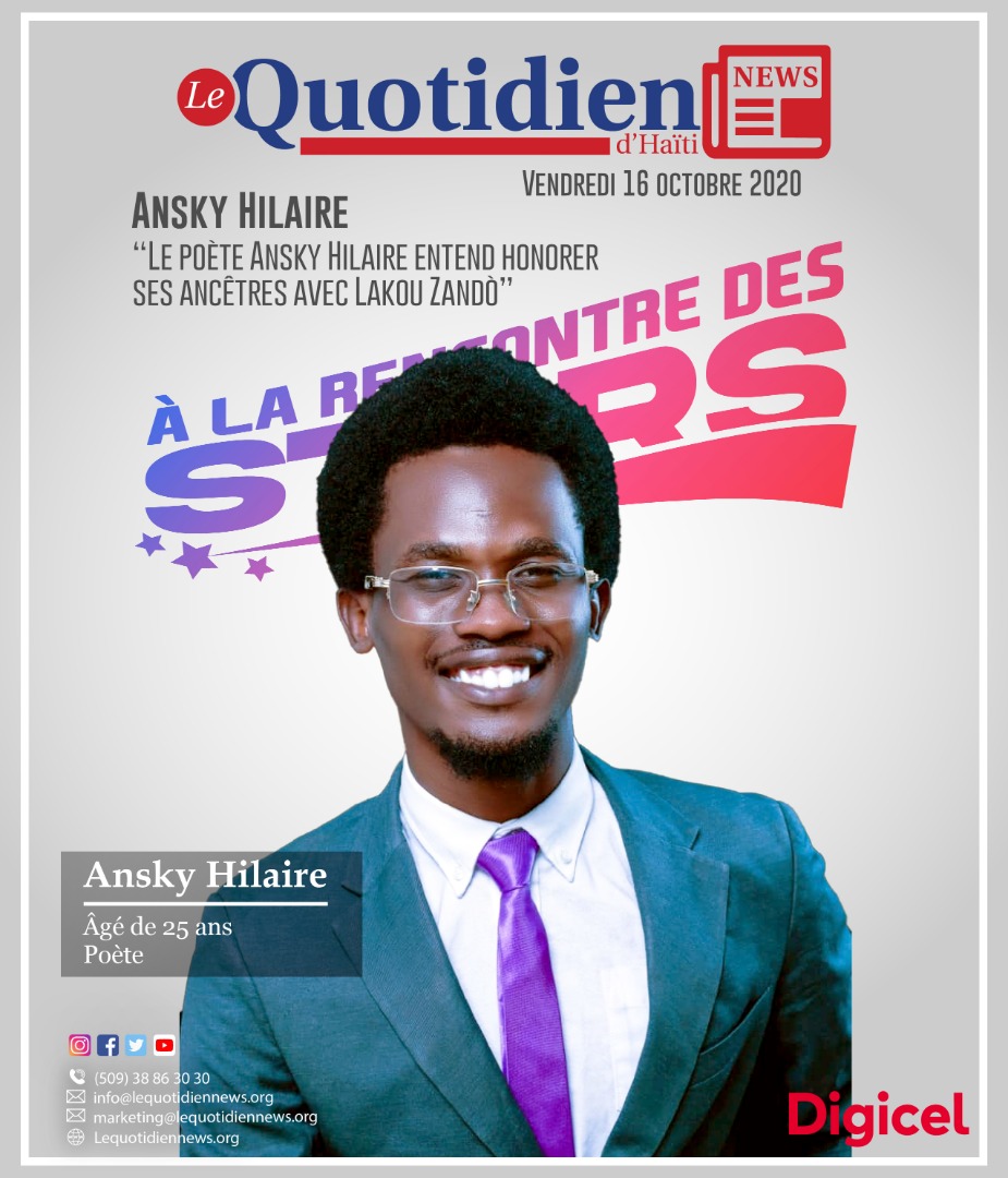 Âgé de 25 ans, le natif de Dufort, Ansky Hilaire, sert aux entichés de la lecture sur la table littéraire, un recueil très original de poésie et de nouvelles. Le livre sera disponible sur Amazon à partir du 2 novembre, tandis que sa vente signature se tiendra trois jours plus tard, à la Bibliothèque Nationale d’Haïti, le 5 novembre, de 11 heures à 15 heures. À l’occasion de ce grand évènement qui s’articulera autour du thème « Poukisa pwezi an dwe angaje », plusieurs poètes dont Ricardo Boucher le Batayè Powèt, Kevin Pierre et la figure de proue de Powèt Revòlte, le poète rappeur Rhod, dit D-fi, seront au rendez-vous.