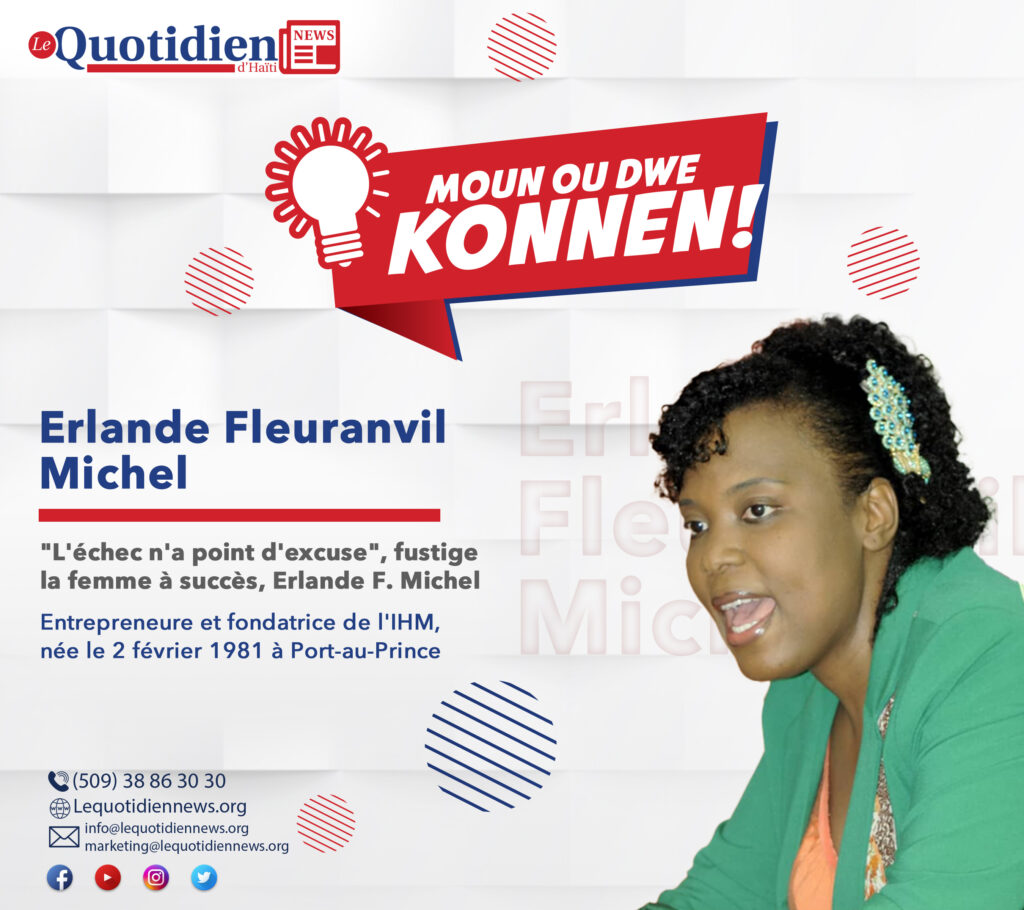 Erlande Fleuranvil Michel incarne une guerrière qui affronte la vie en vainqueure dès sa naissance. Une femme qui a gravi dignement les marches des vicissitudes jusqu’à s’asseoir aujourd’hui au siège de la Direction de l’Institution Hiel Matthnaï et le berceau Kindergarten, son propre établissement scolaire fondé en 2008. Passionnée d’éducation, la quadragénaire est fière de contribuer à la construction de l’avenir du pays. Découvrons dans ce papier l’histoire inspirante de cette grande personnalité.