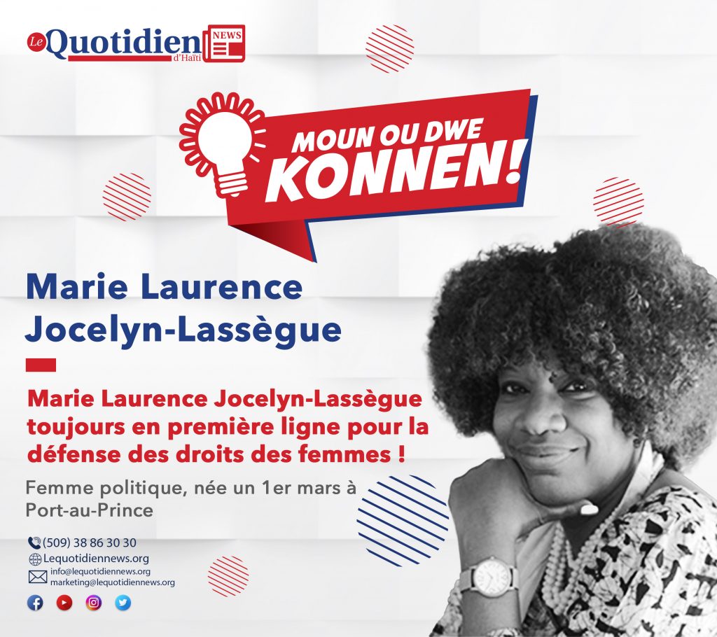 Née de parents originaires du Sud un premier mars 1955 dans la ville métropolitaine, Marie Laurence Jocelyn-Lassègue, de son petit nom Man Lolo, se passe de présentation en Haïti. Âgée de 68 ans, elle a eu une longue carrière agrémentée de moments forts sur la scène politique, si l’on pense notamment à ses passages à la tête du Ministère de la Culture et de la Communication et à celui de la Condition Féminine et des Droits des Femmes, sous l’ère du Président René G. Préval.