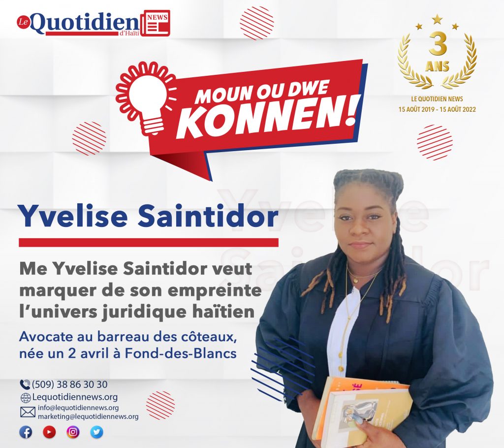 Me Yvelise Saintidor vient de s’adjuger le premier prix du concours de plaidoirie organisé par le Barreau des Côteaux. Un titre qui symbolise pour la jeune avocate le fruit de nombreux sacrifices. Après ce parcours glorieux, elle se dit prête à représenter fièrement son Barreau au niveau national et international. Découvrons dans ce numéro de « Moun ou dwe Konnen », le parcours plus qu’inspirant de la lauréate.