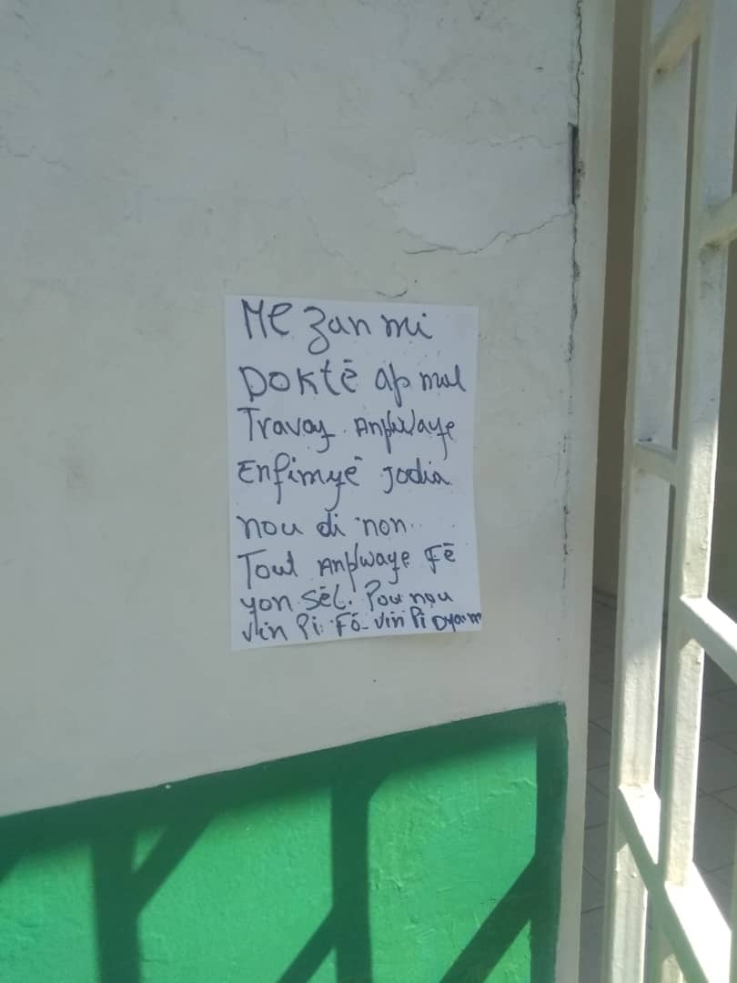 Cela fait environ deux semaines que le personnel médical de l’HUEH se trouve en grève. Mais les impacts de cette grève sont comparables à une grève de deux ans. Pourtant les grévistes, selon ce qui est marqué sur les pancartes qui décorent les murs de l’hôpital, sont décidés à faire durer la grève tant que l’État ne répondra pas à leurs revendications.