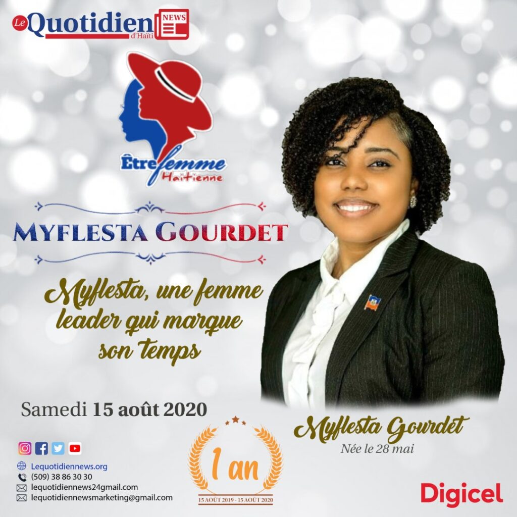 Une graine d’espoir pour la nouvelle Haïti, qui promet par ses actions novatrices pleines d’engagement, de fougue, de virtuosité et d’enthousiasme, un avenir meilleur et prospère à notre pays. Son nom : My flesta Gourdet, une jeune femme de 28 ans, interviewée par Le Quotidien NEWS sur son parcours, dans ce numéro « Être une femme haïtienne ».