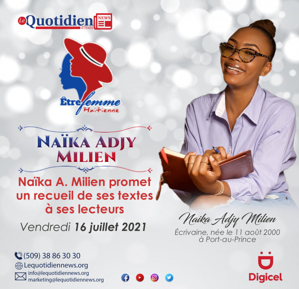 Naïka Adjy Milien, une jeune femme qui se libère dans le vaste univers des mots, veut conférer un sens à sa vie à travers l’écriture. La belle plume de vingt ans espère publier sous peu un recueil de ses œuvres dont la plupart sont déjà sur son compte Instagram.