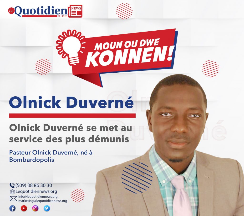 Né à Bombardopolis, dans le département du Nord-Ouest, dans une fratrie de neuf enfants dont il est l’aîné, Duverne Olnick est un leader communautaire qui évolue aujourd’hui à Cabaret, plus précisément à la quatrième section communale, Fond-Blanc. Élevé dans une famille chrétienne, M. Duverne n’a jamais renié sa foi, au contraire il s’en est servi comme repère dans ses moments d’égarement, à en croire ses propos. « En 2005, lorsque j’ai quitté le foyer familial pour continuer mes études à la capitale, la vie m’a paru de plus en plus difficile. À ce moment-là, j’ai passé des journées de jeûne personnel et des nuits de prière très alarmantes », se rappelle celui qui aujourd’hui se met au service de sa communauté comme pasteur.