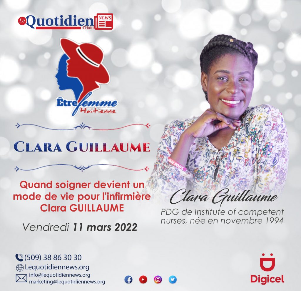 Inspirée de sa mère, Clara Guillaume fait montre d’un courage et d’un dévouement exemplaires pour ses collègues infirmières et les jeunes de sa génération. Elle souhaite marquer son empreinte dans ce domaine, et veutque son pays puisse en profiter au maximum. Vu sa détermination, elle arrivera jusqu’au bout de son rêve et sera pour les générations futures une icône dans ce domaine en Haïti.