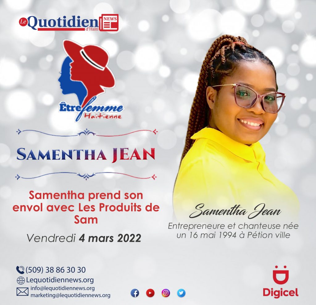 Jeune femme déterminée, armée d’une grande clairvoyance, Samentha Jean veut marquer de la plus belle manière qui soit son existence sur cette terre. Pour elle, l’entrepreneuriat est justement la voie idéale pour une femme pour s’émanciper dans une société encore sous l’emprise du machisme. « Cela permet à une femme de se découvrir, d’exploiter davantage ses potentialités, d’une part. D’autre part, il confère une importante autonomie à une femme, qui n’a pas à dépendre de quelqu’un », argumente Samentha qui dit s’inspirer de Erlande F. Michel et de Anédie A. Doura, outre sa mère, avec qui elle a eu l’opportunité de collaborer.