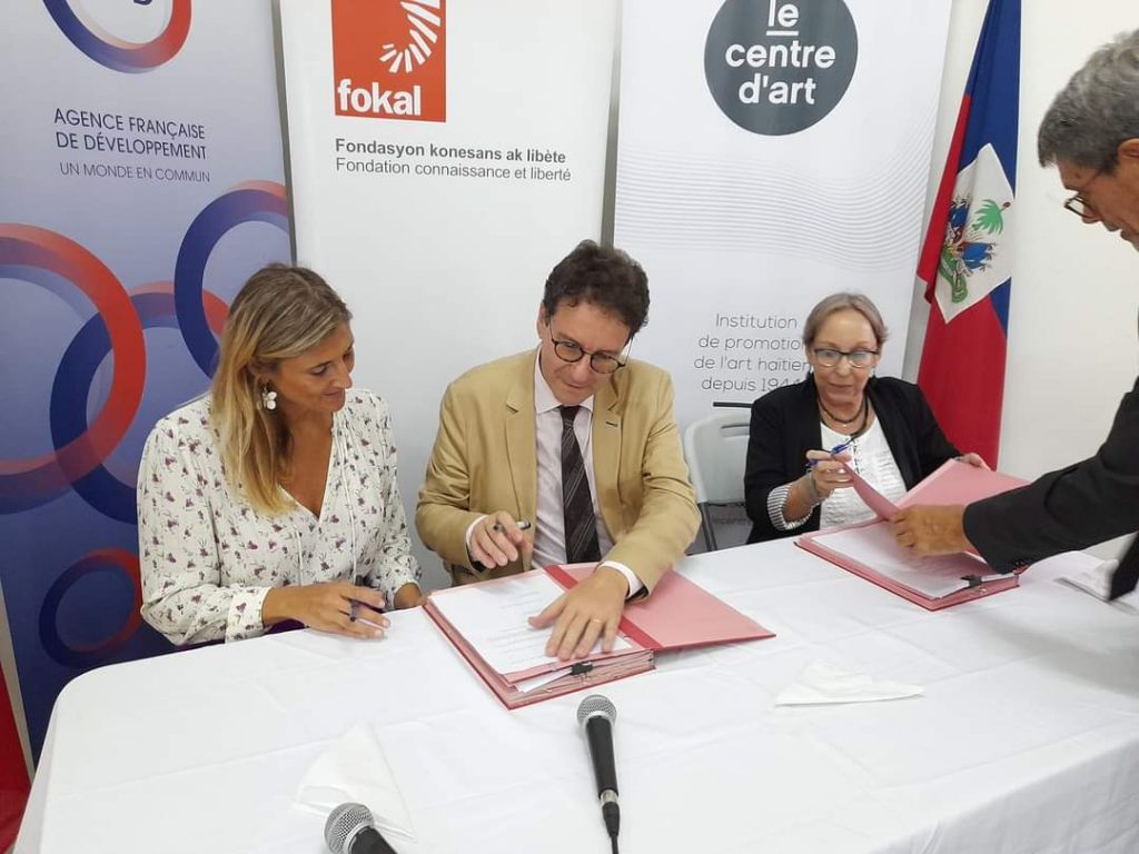 Le mercredi 9 novembre 2022, l’Ambassadeur de France en Haïti (Fabrice Mauriès), l’Agence française de développement (AFD) et la Fondation Connaissance et Liberté (FOKAL) ont signé une convention de financement pour la création d’un nouvel espace culturel à Port-au-Prince : la Fabrique des Arts.