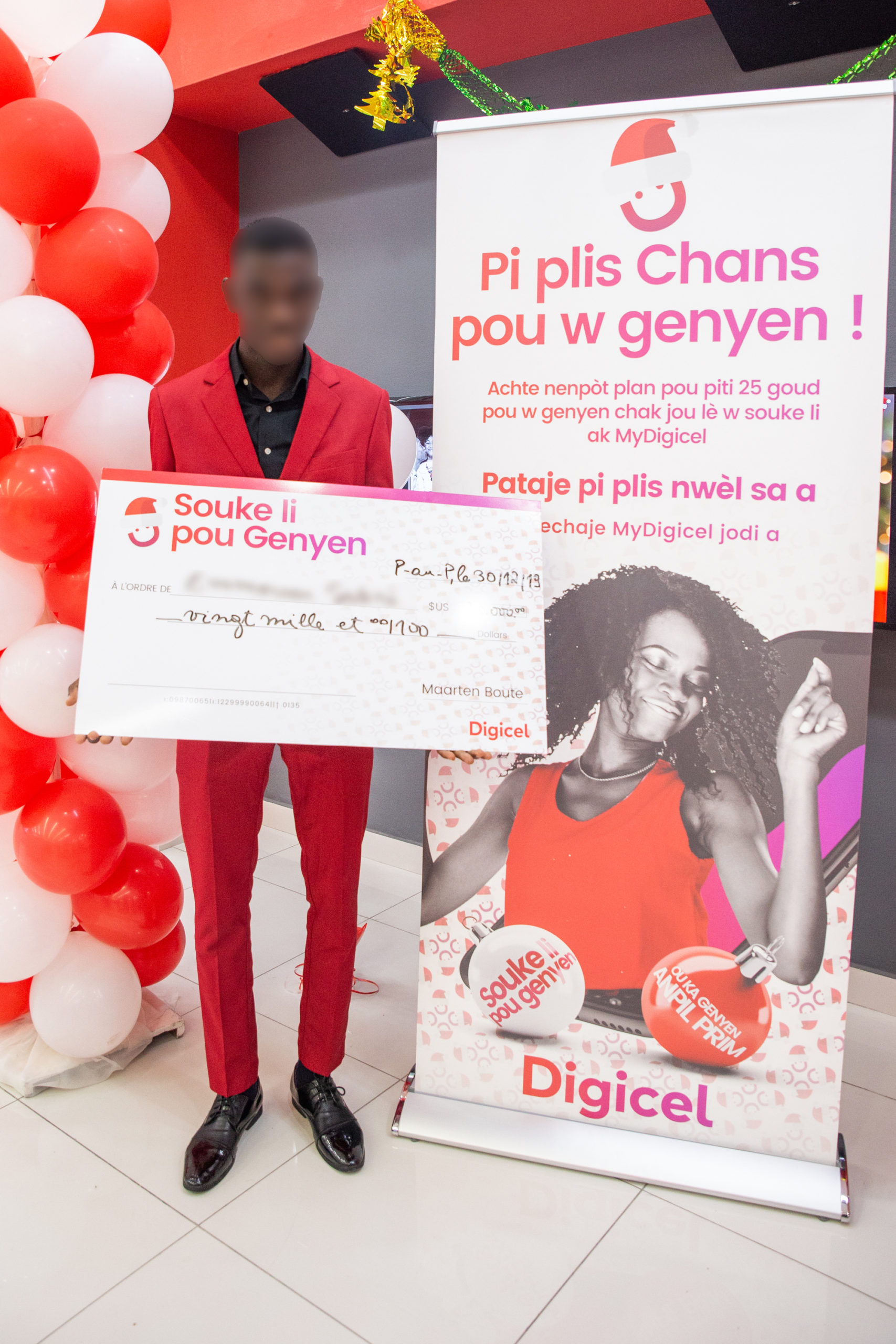 À la fin du mois de novembre 2019, le plus grand réseau de téléphonie mobile en Haïti avait annoncé qu’elle donnerait PLUS à ses clients avec sa promotion de Noël » Souke Li » à travers sa nouvelle application MyDigicel. En effet, un parmi ses millions de clients dans ses marchés dans les Caraïbes et le Pacifique devait terminer l’année en beauté en remportant le grand prix régional de 20 000 dollars US le samedi 21 décembre 2019 dernier. L’heureux gagnant vient d’être enfin dévoilé et il s’agit d’un jeune Haïtien de 20 ans, amateur de football nommé Emerson, originaire du département de l’Ouest.