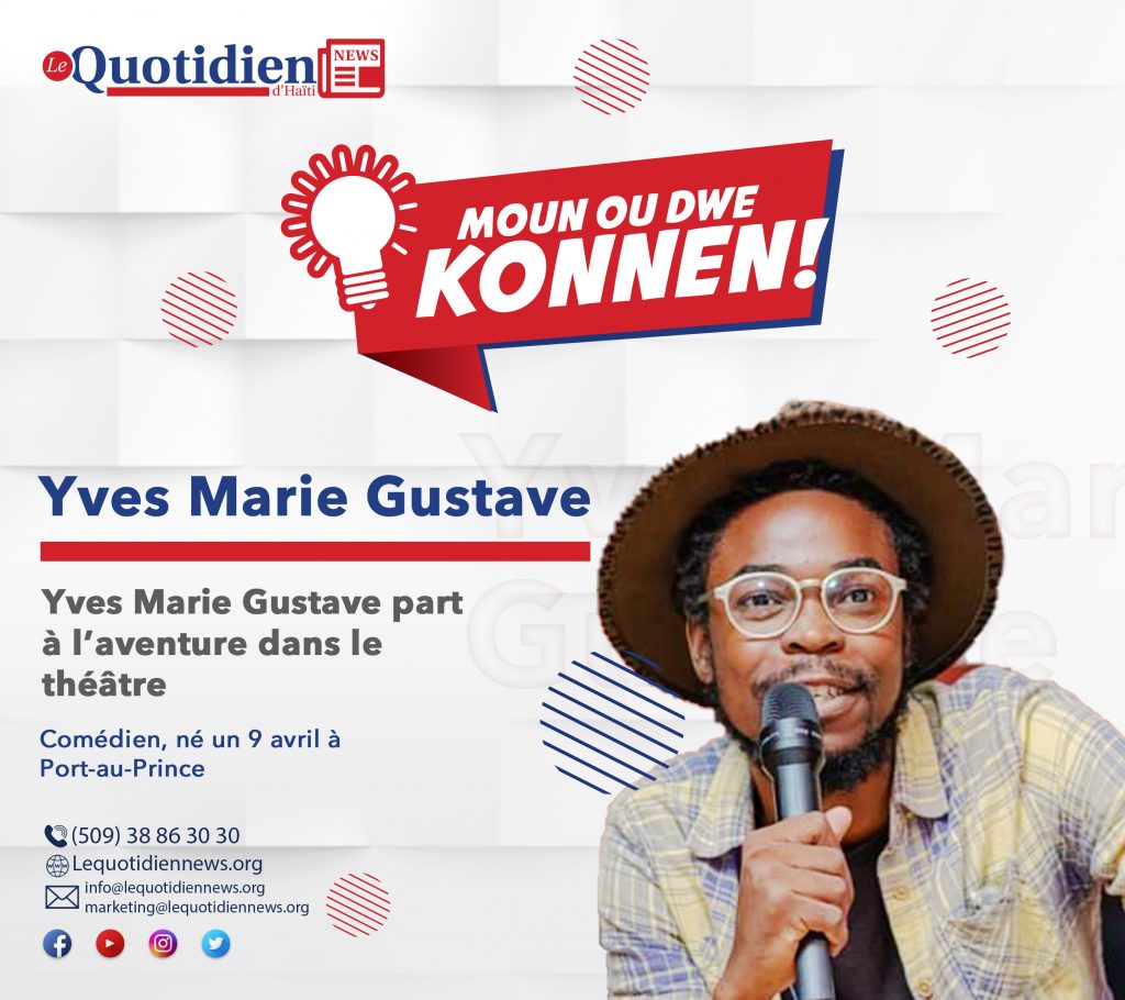 Yves Marie Gustave est connu dans le milieu de la scène comme un jeune comédien, pétri de talent, qui promet un grand avenir. Depuis six ans, le poète dirige la compagnie de théâtre Les ateliers d’encriture, et coordonne l’Espace culturel des jeunes de Turgeau, un centre culturel communautaire. Pour le natif de Port-au-Prince, un vrai artiste doit avoir la capacité de se réinventer dans les moments de crise sociale aiguë. Il en témoigne dans ce numéro.