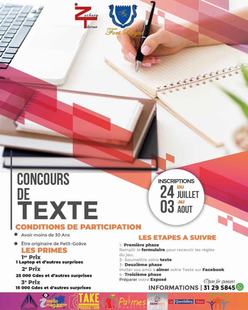 Dans le but de valoriser les patrimoines humains et culturels de la commune de Petit-Goave, Zachary THERMO lance, à l’intention des jeunes de la cité de Faustin Soulouque, un concours de textes autour du thème « Petit-Goâve et ses patrimoines ». « Ce concours se veut être un élément déclencheur qui doit attirer l’attention des petitgoaviens sur la nécessité de réhabiliter nos patrimoines culturels et fixer les projecteurs sur ce lieu plein de potentiel », ont fait savoir les organisateurs.